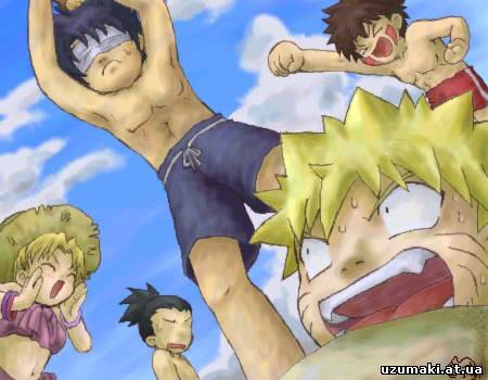 | Саске рассказывает матери: - Ма, сегодня, когда я пришел в класс, то доброе дело сделал! - Молодец. Какое же? - Наруто подложил на стул Ируке-сенсею кнопку... - А ты? - А я, когда тот начал садиться, убрал из-под него стул! Кабуто подходит к Саске с кружкой: - Кофе, чай? Тот, немного подумав: - Пожалуй, кофе. - А вот и не угадал - чай...