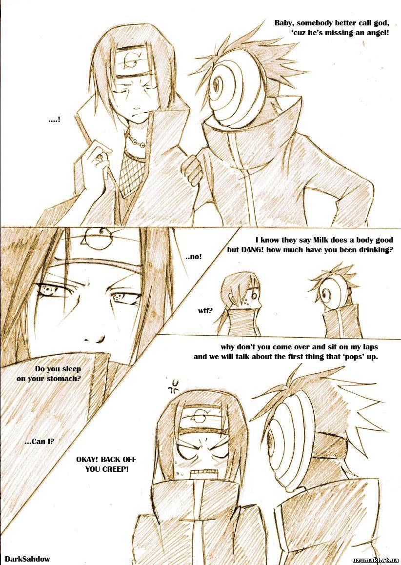 | :21: Юбилейники: Итачи - мне 20, Кабуто - а мне 22, Орочимару - а мне все равно... Группа АНБУ проходит через Альпы: - Вперед, богатыри! Бей гномов, отбирай у них шоколад!