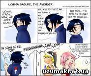 | Дневник Учиха Саскэ День 1 Был в Академии. Был там самым привлекательным. Удзумаки Наруто не выдержал и полез целоваться. Он ТАКОЙ прилипчивый! Много думал о мести. День 2 Почти завалил этого придурка, нового наставника Какаши, но он в последний помент затащил меня под землю. На что он намекал, извращенец? И потом, все эти порнографические журналы, который он не дает посмотреть…. Определенно самый привлекательный в команде №7. Сакура во всем розовом. Она красит волосы? День 3 Из-за тумана Забузы ничего не видно, и невозможно как следует причесаться. Очень боюсь, что из-за этого Сакура перестанет кричать «Саске-кун!» и пытаться меня обнять. Наруто такой глупый. По-прежнему привлекательнее всех. День 4 Какаши переюзал свой шаринган и теперь валяется без чувств в доме селянина. Какаши такой милый, когда лежит молча и не закрывает небольшой открытый участок лица этой дурацкой книжкой. Сакура убъет меня, если я что-то предприму. День 5 Забуза не умер. Другие новости – боюсь, что Хаку симпатичнее меня. Глупая ревность! Почти был убит Хаку. Выжил, чтобы быть обслюнявленным Сакурой. День 6 В честь этого идиота Наруто назвали мост! А он такой большой и мощный! Долго им любовался (мостом). Сакура по-прежнему носит одно розовое. Глупая баба. Подозреваю, что она сперла мой крем от загара. Все эти долгие прогулки от Конохи до Черт-Знает-Где-Это-Находится очень портят мой цвет лица. День 10 Должен стать сильнее, чтобы убить старшего брата, который убил всю мою семью, весь мой клан, всех наших домашних животных, всех кошек, крыс и блох, и надругался над трупами. Буду сдавать чунинский экзамен. Какаши явно испытывает к Ируке странное влечение. Если он что-то предпримет, Наруто его убъет. День 11 Познакомился с приятным пожилым человеком, который оказался: во-первых - легендарным саннином, во-вторых - педофилом-извращенцем. Предлагал мне сходить с ним «в кустики». Чего я там не видел, в кустиках-то? День 13 Оказалось, в кустиках я много чего не видел, а Орочимару кусается. Противный. Теперь на шее отвратительный след его кривых зубов. Какаши сделал мне татуировку хной. Милый Какаши. По-прежнему самый привлекательный, не смотря ни на что. День 20 Орочимару меня искушает. Это так тривиально. Меня ничем не искусить, т.к. у меня уже есть все, что я хочу: чудесные глаза и задница, как гранит. День 50 На нас вероломно напали. Не успел я так славно поваляться на травке с Гаарой, как этот Орочимару убил нашего Хокаге. Гаара испугался и убежал. Я хотел его догнать, чтобы взять телефончик, но тут вмешался Удзумаки и все испортил. Интересно, на что он намекает? Если он что-то предпримет, Сакура его убъет. День 60 Встретился с братом. Ничего не помню... День хх Оказывается, брат меня побил. Он побил еще и Какаши, но обслюнявленным Сакурой оказался именно я! Неужели в этом сериале, чтобы получить молчаливую дружественную поддержку от настоящего друга, нужно все время носить маску на все лицо и читать порно-мангу? Какаши НИЧЕМ не привлекательнее меня. Не понимаю. Чувствую, что начинаю дуться. День 1х Получаю странные письма от некой дамы по имени «Любительница Учих», которая хочет сделать что-то непотребное с моим естеством. К счастью, у меня есть супер-пупер Шаринган, так что убегу, как только ее завижу. День 2х Похоже, что нравлюсь Орочимару. Все так несправедливо! У него очень длинный язык… так что в э