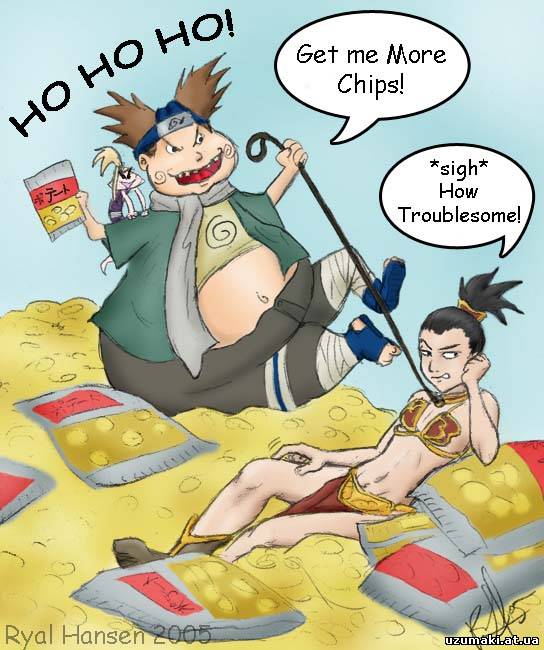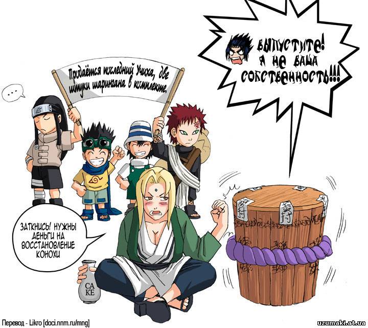 | Tikaryko, все класс, но 2 лучше Разговаривают Шикамару и Наруто: - Как ты думаешь, что самое важное в женском лице? - Рот. - А на что ты обращаешь особое внимание? На форму губ? На безупречность зубов? - Все это мне без разницы. Главное, чтобы он закрыт был. - Слышал новость? Саске выиграл путевку в Страну Звука! - Да... ему бы еще путевку обратно выиграть... На заборе Кибы висит табличка: "Осторожно, собака!" Заходят во двор гости. Смотрят - никакой собаки нет. Они - к Кибе: - Зачем же вы табличку повесили? - А вон, видите, цуцик в травке сидит? Чтоб не наступили... Рецепты от Цунаде: «Маска для лица. Берется квашеная капуста. Укладывается на тарелочку. Поливается постным маслицем. Капуста съедается под саке… Лицо блаженно улыбается и свежеет».