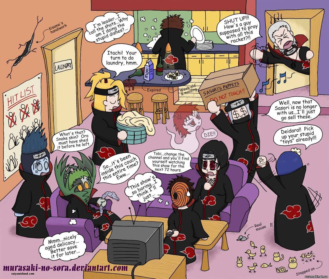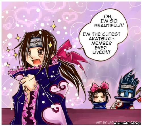 | последний класс!!! Путешествовал Наруто на океанском лайнере, вернулся домой и друзьям рассказывает: - Ну, как вам объяснить, что такое океан? Ну, вот вы плывете-плывете, плывете-плывете, а вокруг ни одного рамен-ресторанчика… Вчера в АНБУ поступил тревожный звонок. Шиноби занервничали, но трубку не сняли. Приходит Саске к Итачи: - Обманщик, обманщик... - Иди отсюда! - Обманщик, ну обманщик! - Я сказал - пошел отсюда! - Ну обманщик, обманщик! - Если ты сейчас не уйдешь, я тебе кунай в задницу вставлю! - Ты еще вчера обещал, обманщик... - Кабуто! Мне трудно дышать! - Зачем же мучить себя, Орочимару-сама? Не дышите!